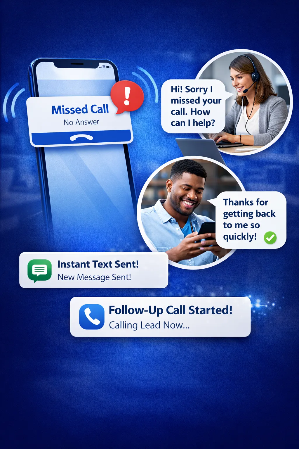 Engage leads within minutes (even when you miss the call)